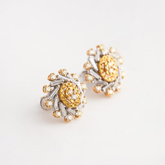 Aretes Oval Espiral Bicolor con Diamantes en Oro 18K