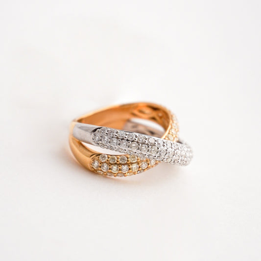 Anillo Cruzado Bicolor en Oro 18K