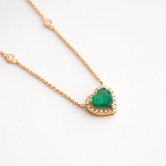 Collar Corazón Imperial de Esmeralda con Diamantes en Oro 18K