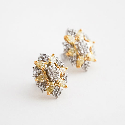 Aretes Cocktail Flor Bicolor con Diamantes en Oro 18K