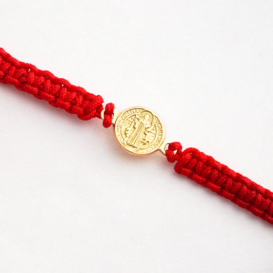 Pulsera de hilo tejido macramé de San Benito en Oro 18k