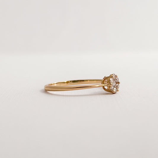 Anillo mini roseta redonda con diamantes 0.14 cts en oro 18k
