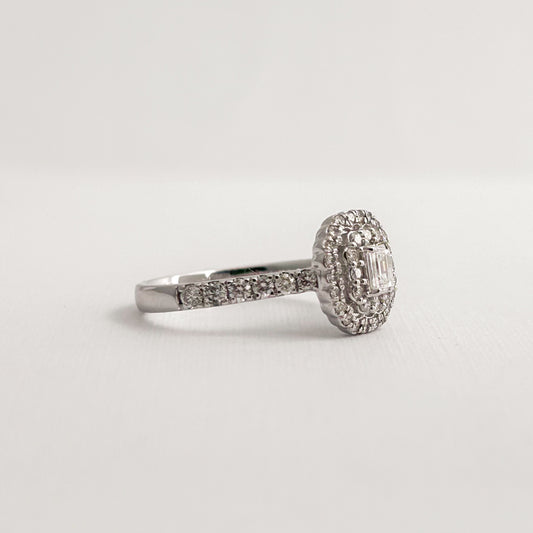 Anillo Halo Emerald con diamantes 0.75 cts en oro blanco 18k