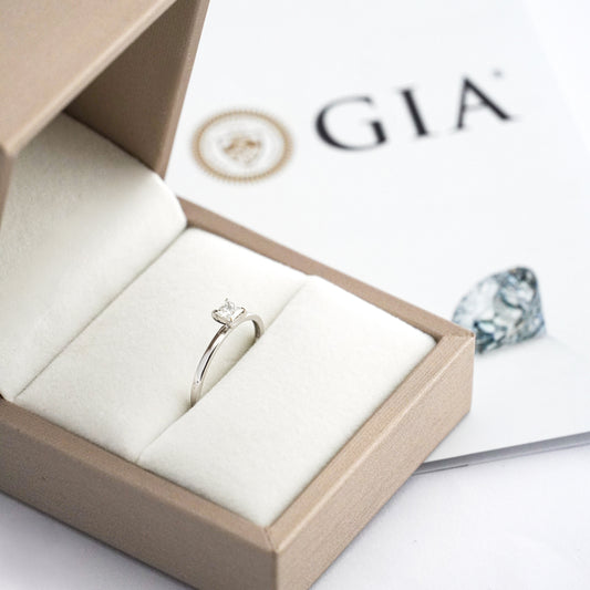 Anillo de compromiso corte princesa diamante GIA 0.30 pts Oro blanco 18k