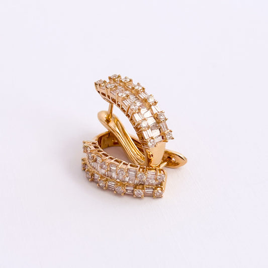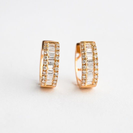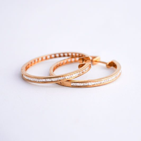 Argollas Redondas con Diamantes Baguette en Oro 18K