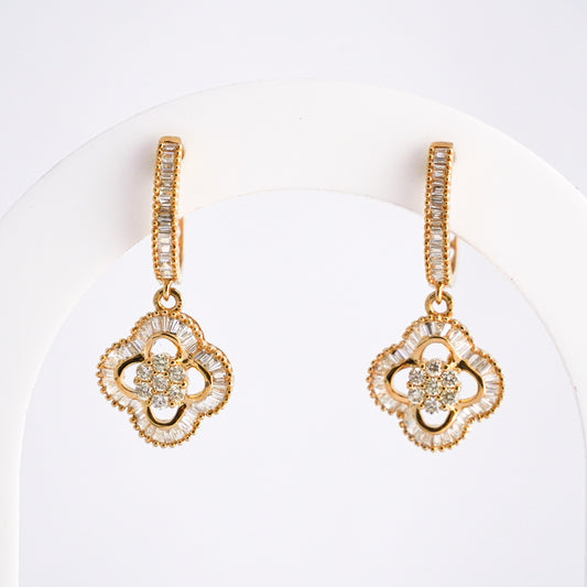 Argollas con Colgante de Trébol y Diamantes Naturales en Oro 18K