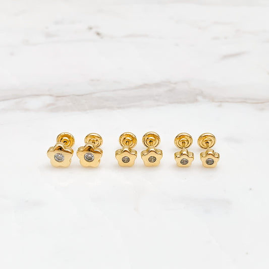 Aretes de bebé Oro18k Circón Brillante bicelado
