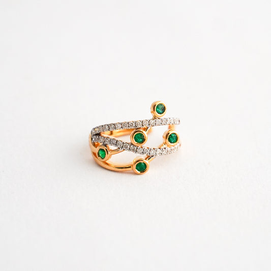 Ear cuff bicelado con esmeraldas y diamantes en Oro18k
