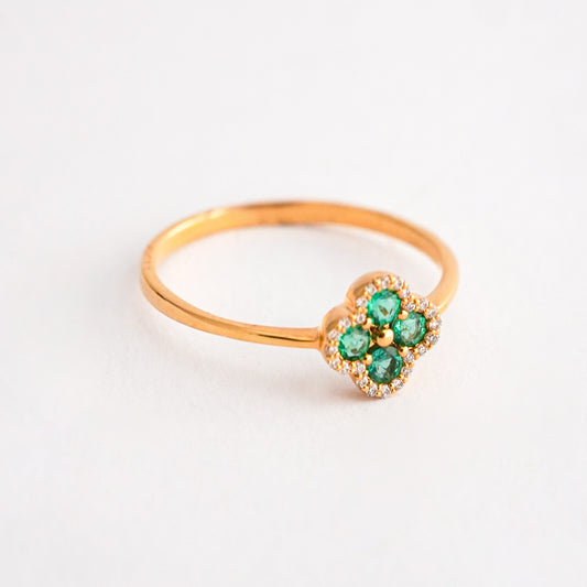 Anillo Trébol Esmeralda con Diamantes en Oro 18K