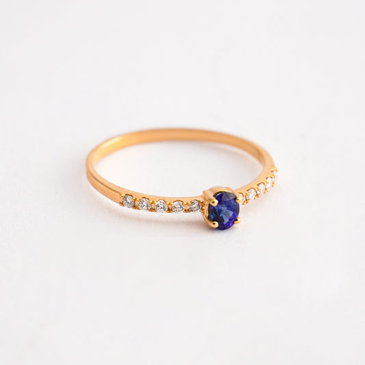 Anillo mini rivier con Zafiro Oval en Oro 18K