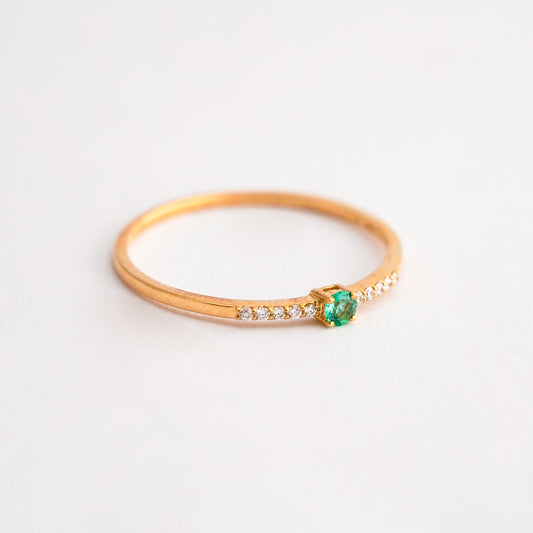 Anillo mini rivier con Esmeralda redondo en Oro 18K