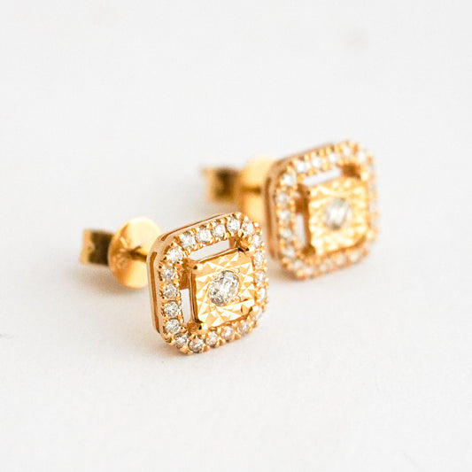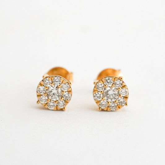 Aretes Roseta redondo punto de luz con diamantes naturales en Oro18k amarillo