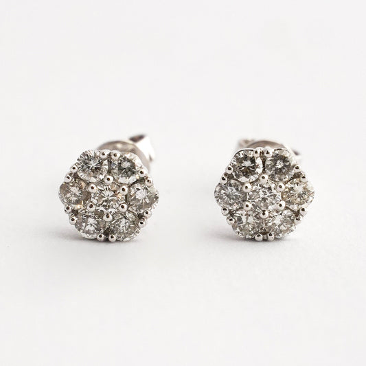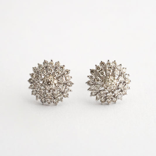 Aretes Halo Floral en Oro blanco con diamantes naturales Oro18k