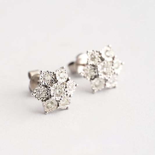 Aretes Estrella de Nieve en Oro blanco con diamantes naturales Oro18k