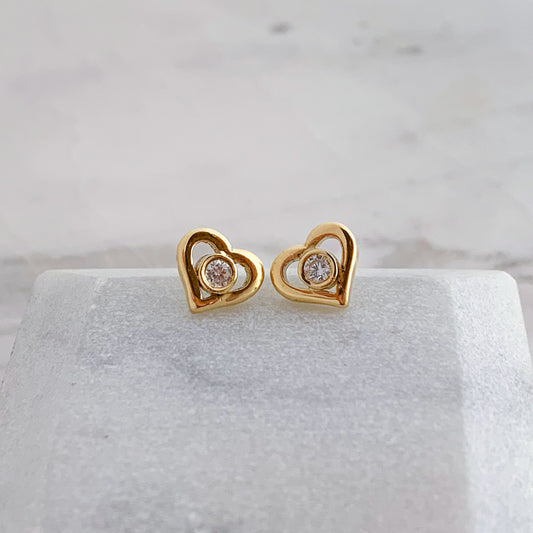 Aretes corazón calado con punto de luz oro 18k