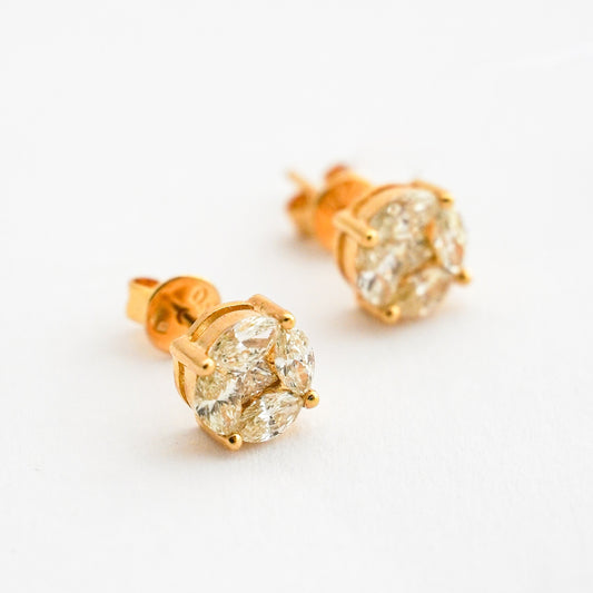 Aretes stud marquise con diamantes naturales en Oro18k