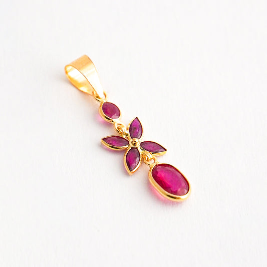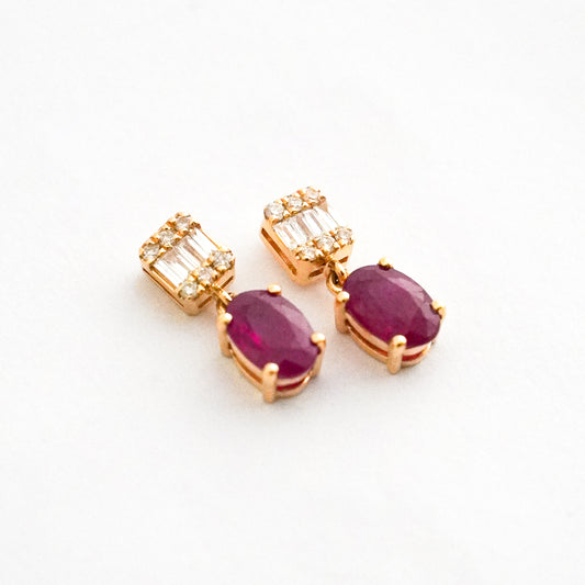 Aretes colgantes rubí oval con diamantes naturales en Oro18k