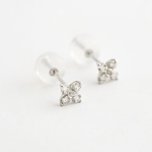 Aretes flor mini con diamantes naturales en Oro18k blanco
