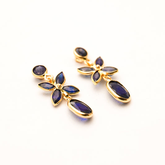 Aretes colgantes flor zafiro en Oro 18K Amarillo