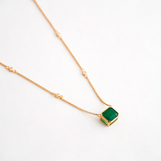 Cadena con dije de Esmeralda bicelado y 6 diamantes en Oro 18K