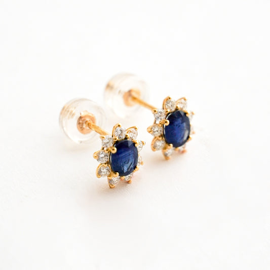 Aretes brillo imperial con zafiro y diamantes naturales en Oro18k amarillo