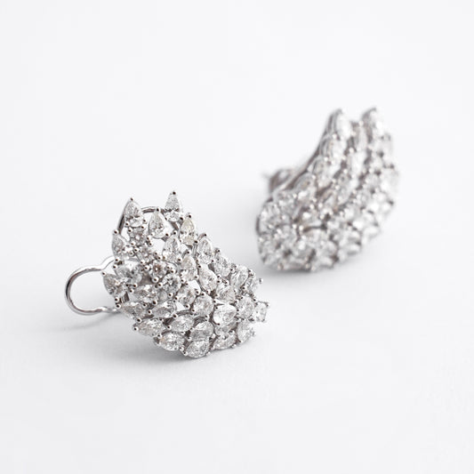 Aretes Rosetas Deluxe con diamantes naturales en Oro 18k Blanco