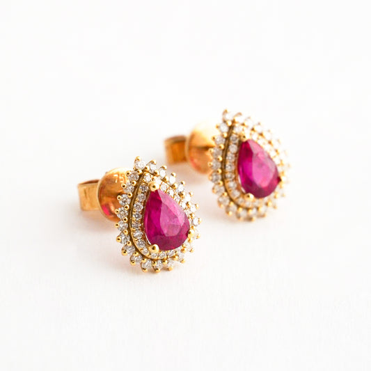 Aretes Pera imperial con Rubí y diamantes naturales en Oro18k