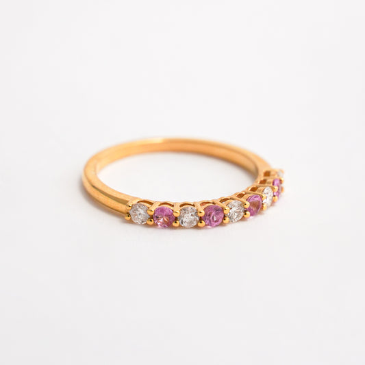 Anillo Medio Riviere zafiros rosados con diamantes naturales en Oro18k