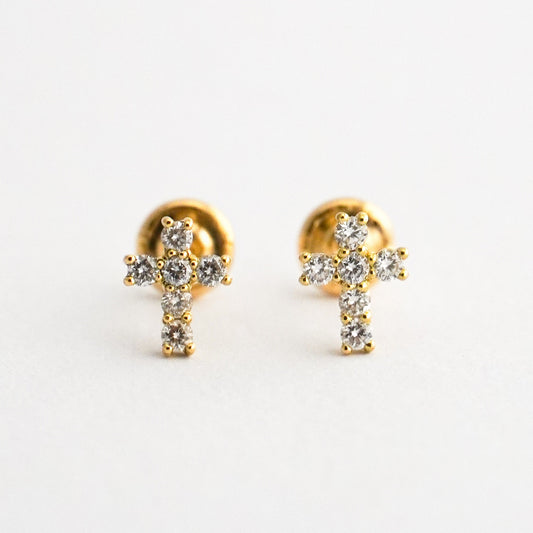 Aretes de bebé cruz en Oro18k con diamantes naturales
