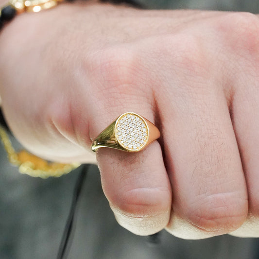Anillo chevalier Oval con diamantes naturales Oro18k