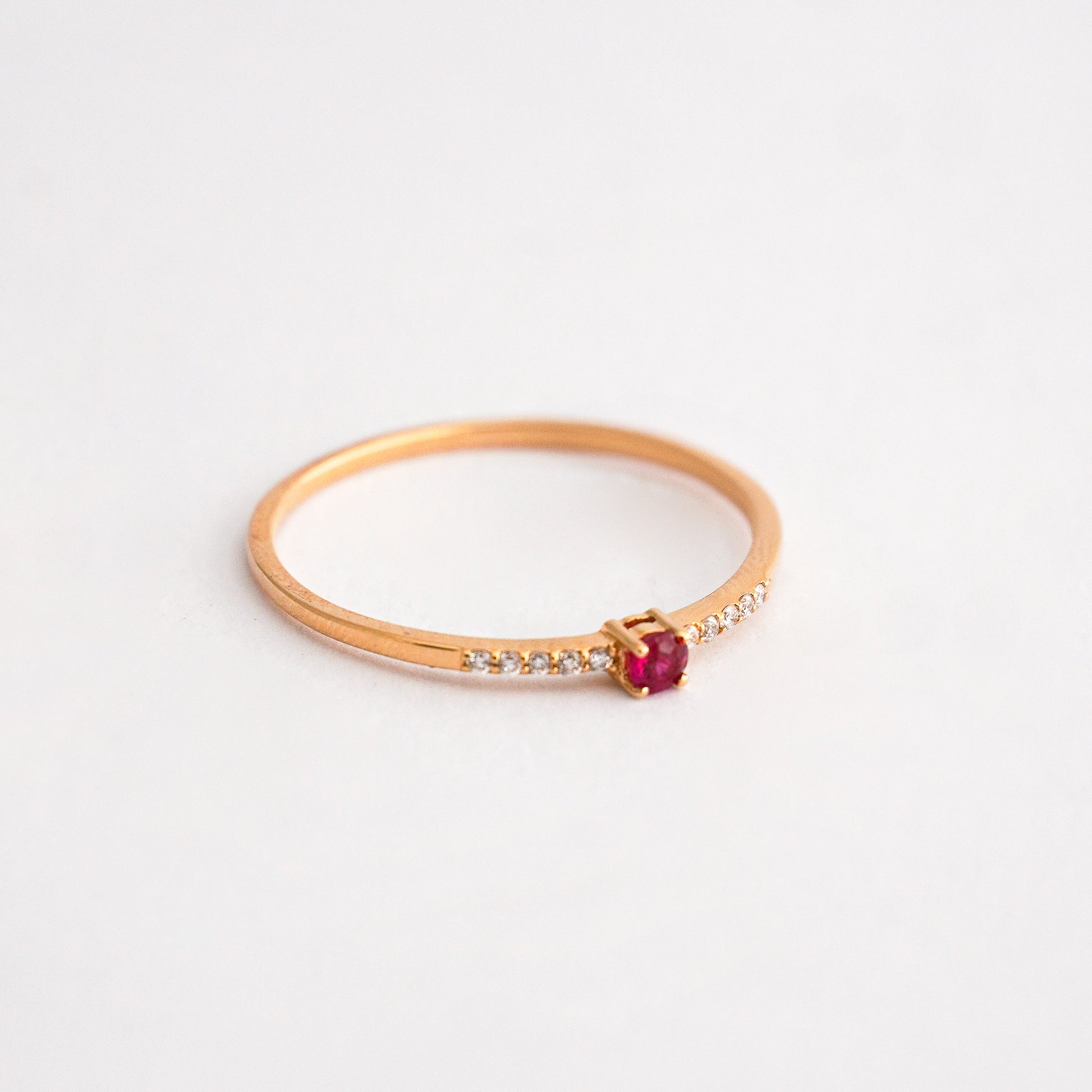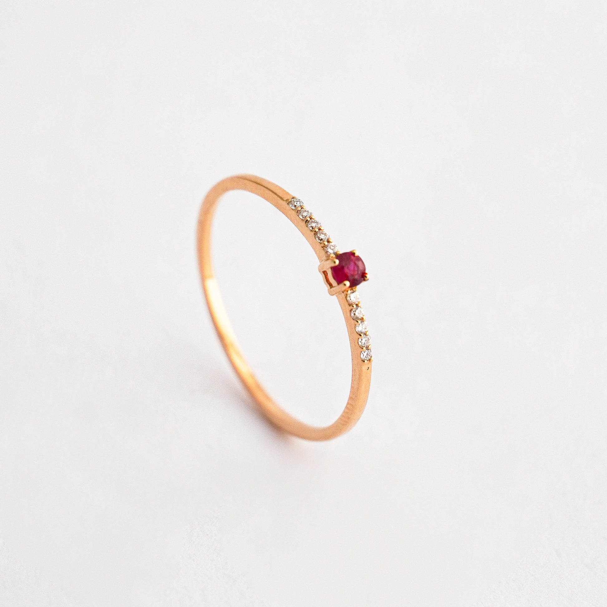 Anillo mini rivier con Rubí redondo en Oro 18K