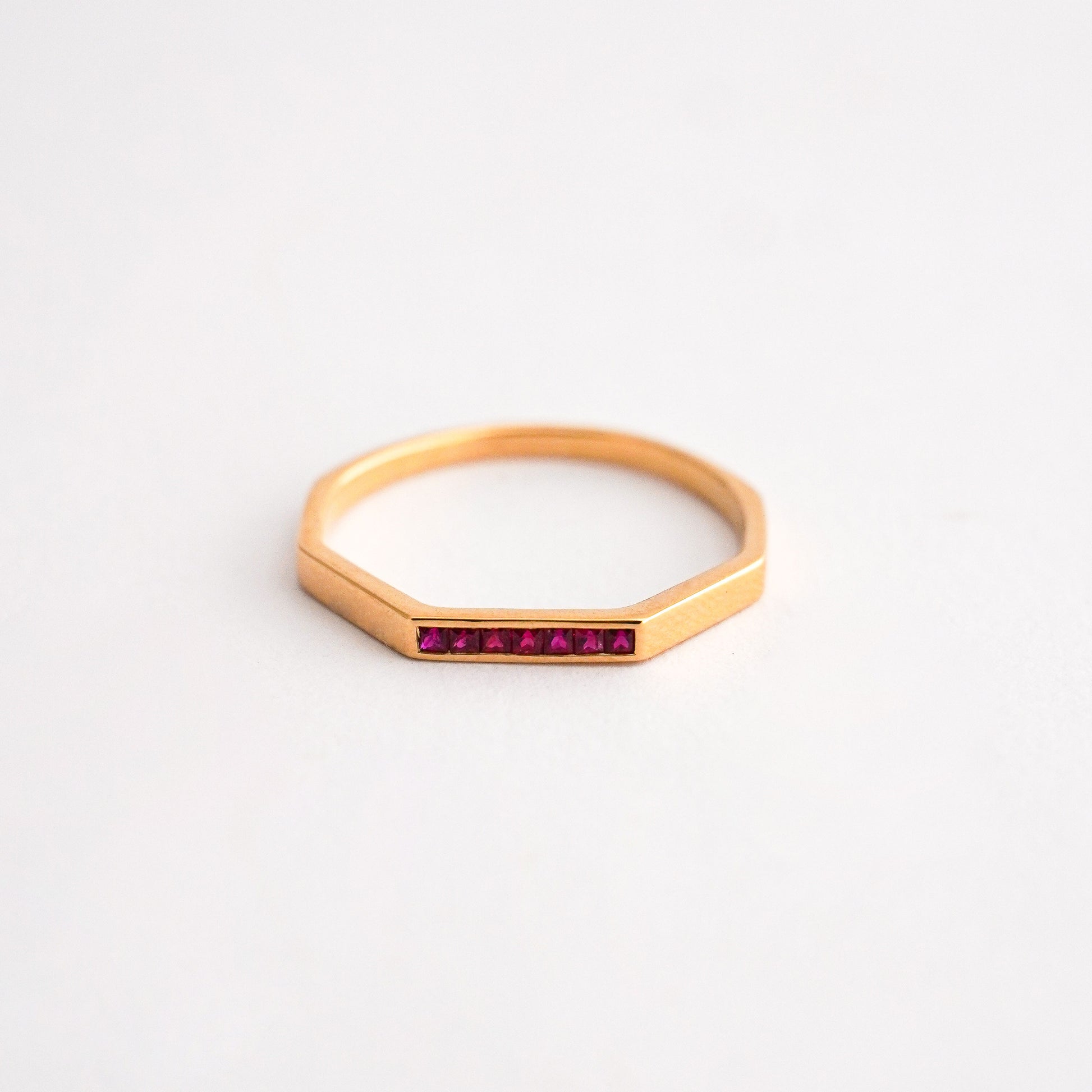Anillo Octogonal Rubí Princesa en Oro 18K