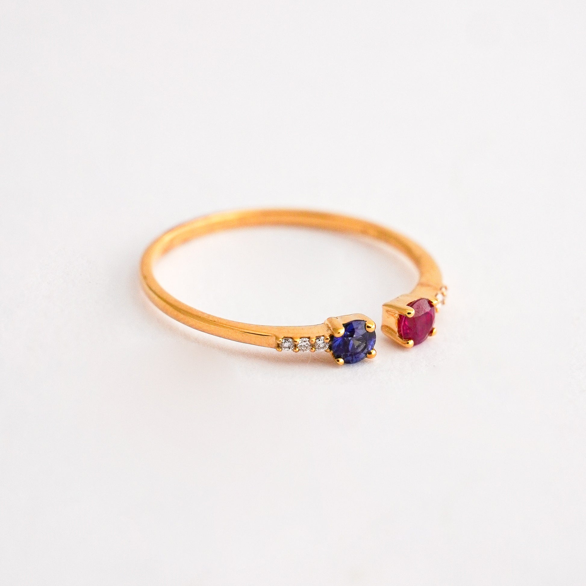 Anillo Rivier Dual con Rubí y Zafiro en Oro 18k