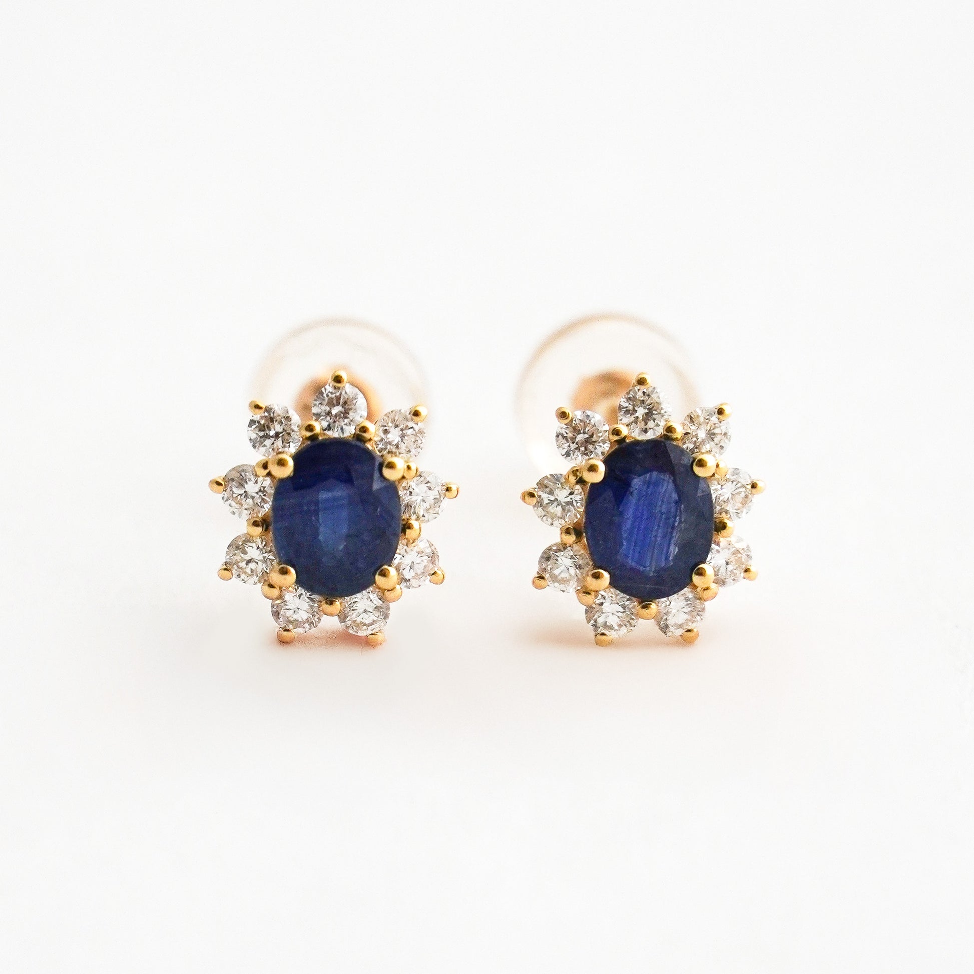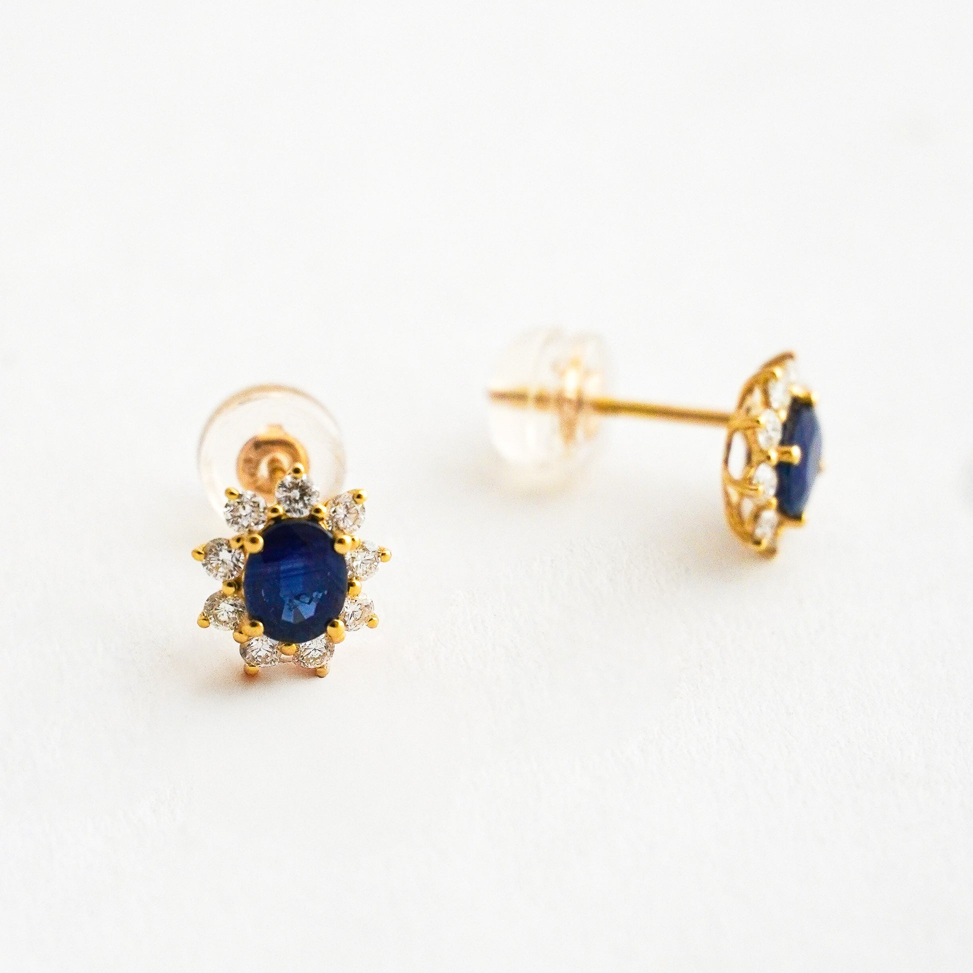 Aretes brillo imperial con zafiro y diamantes naturales en Oro18k amarillo