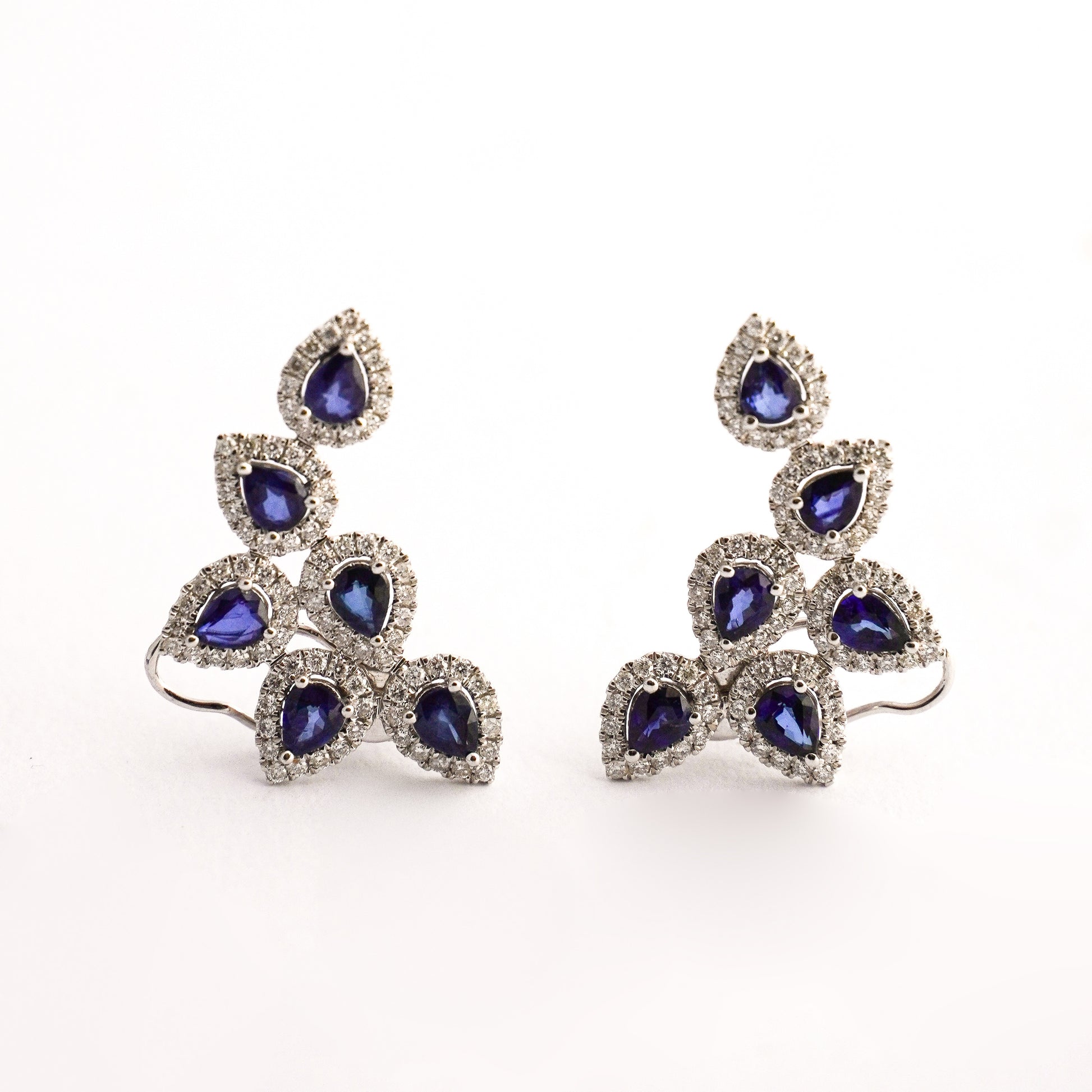 Aretes climber pear sapphire con diamantes naturales en Oro blanco 18k