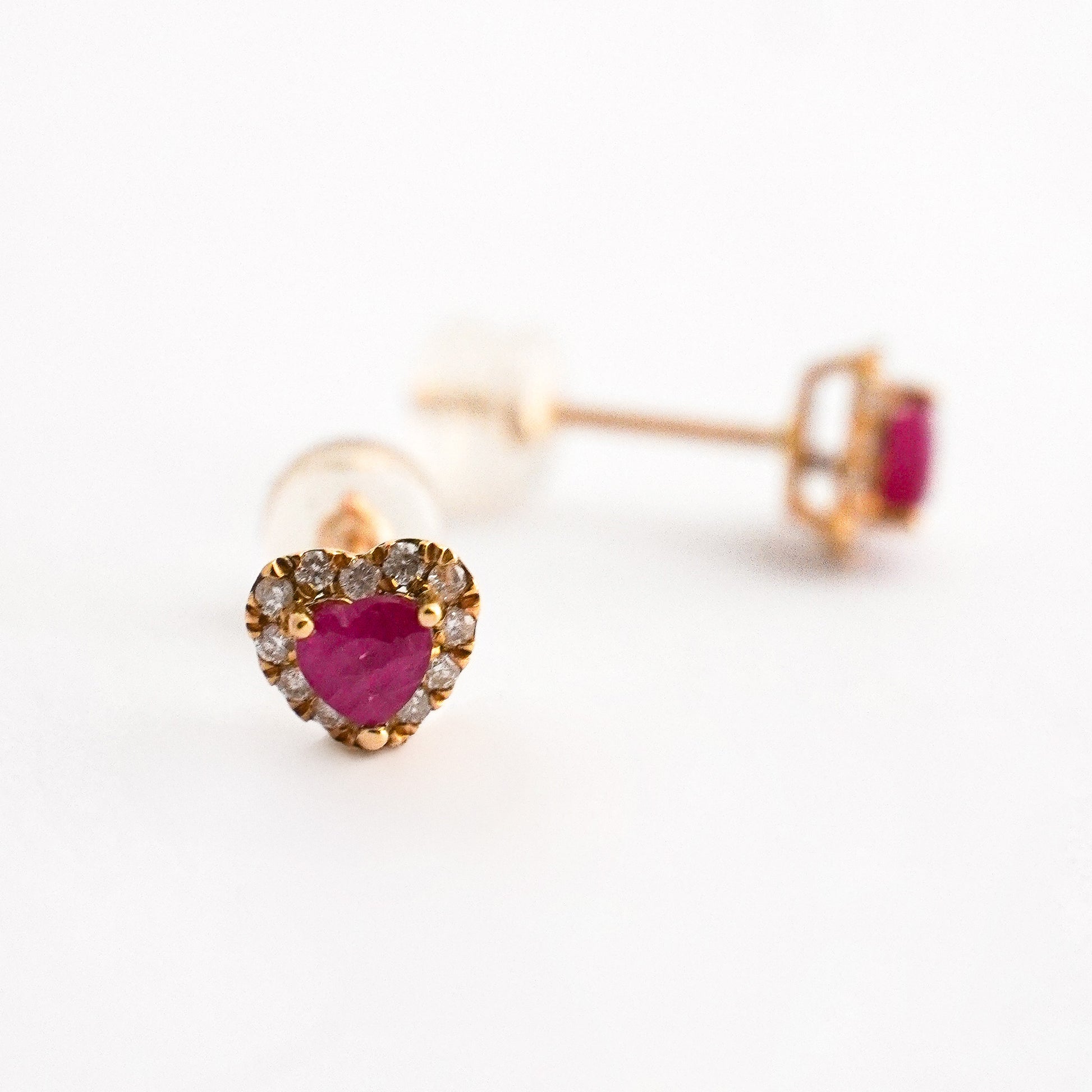 Aretes corazón imperial con rubi y diamantes naturales en Oro18k