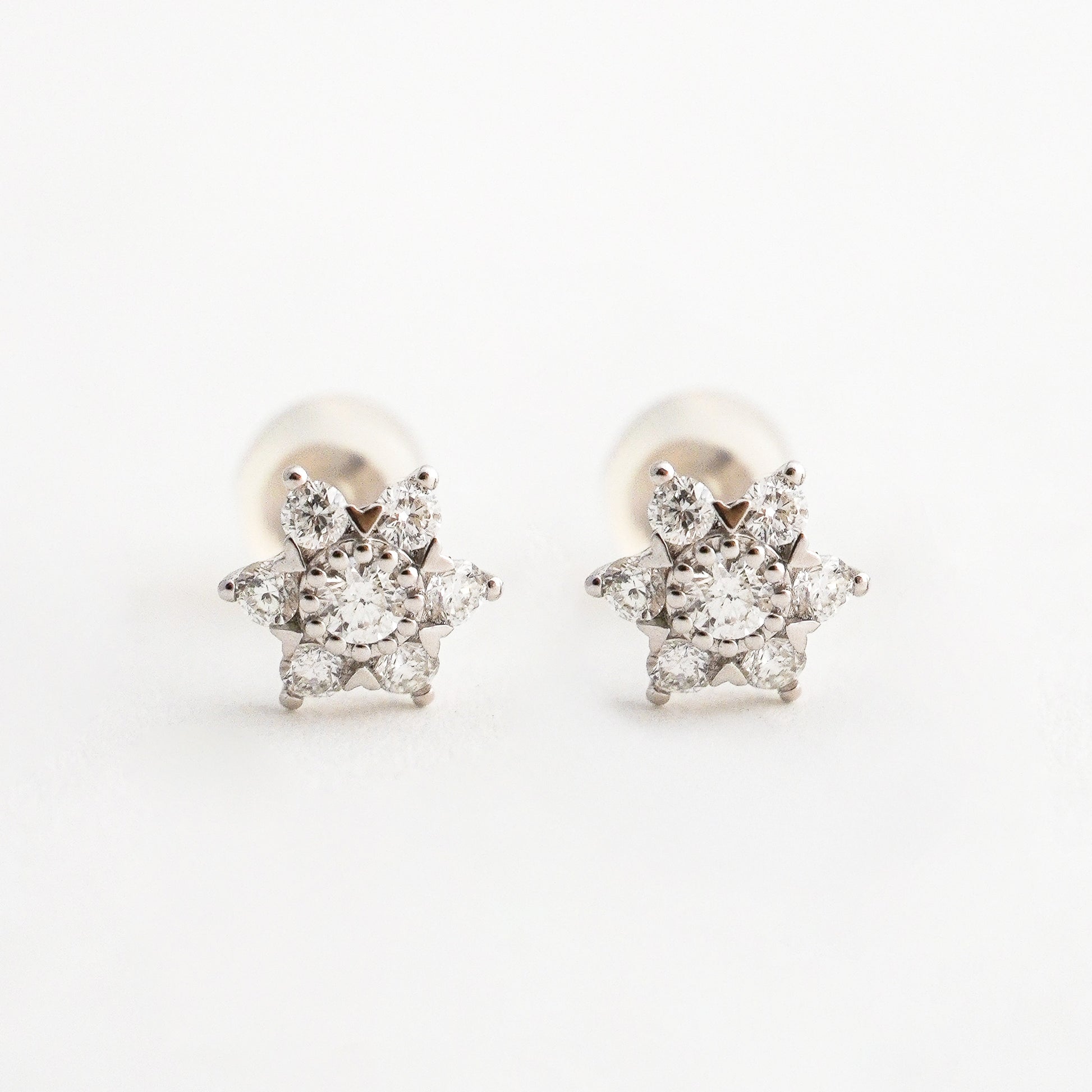Aretes Rosetas Deluxe con diamantes naturales en Oro 18k Blanco