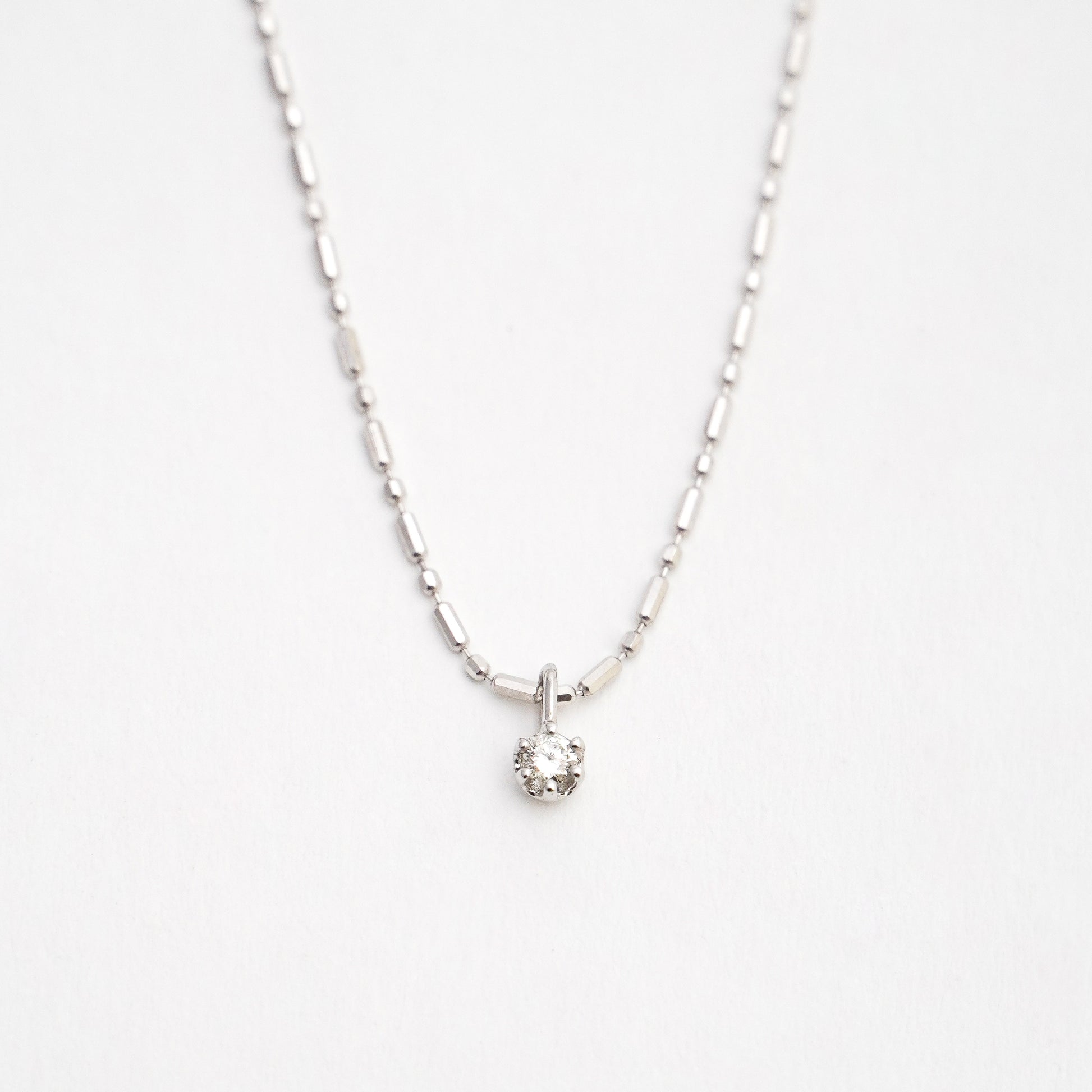 Cadena punto y coma con mini charm diamante natural 0.05 cts en Oro 18k blanco