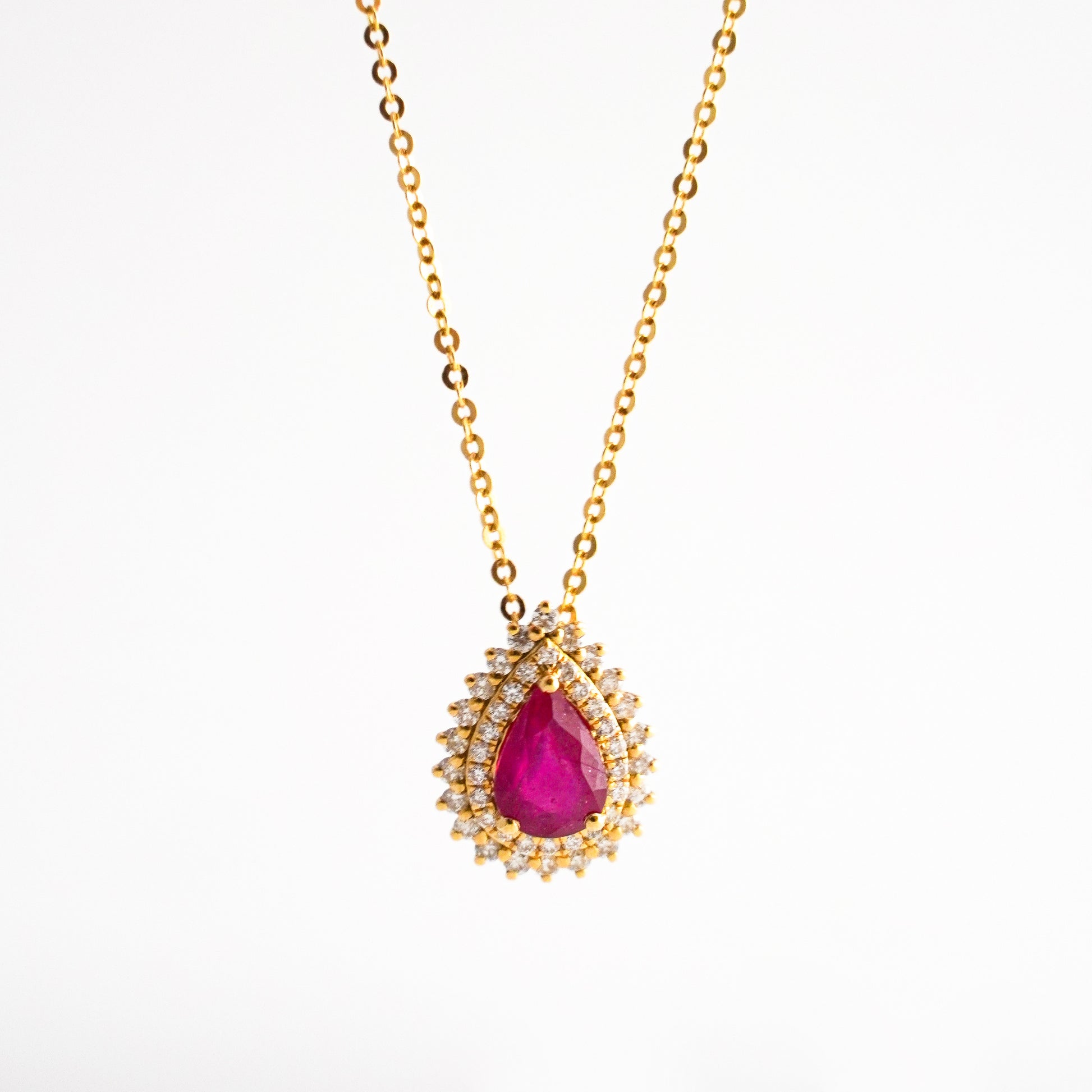 Collar Pera imperial con rubí y diamantes naturales en Oro18k