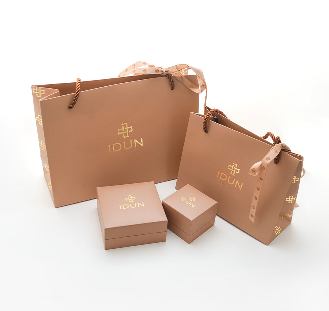 Cada joya IDUN se entrega en nuestro packaging exclusivo, especialmente diseñado para proteger tu pieza y realzar la experiencia desde el primer momento.