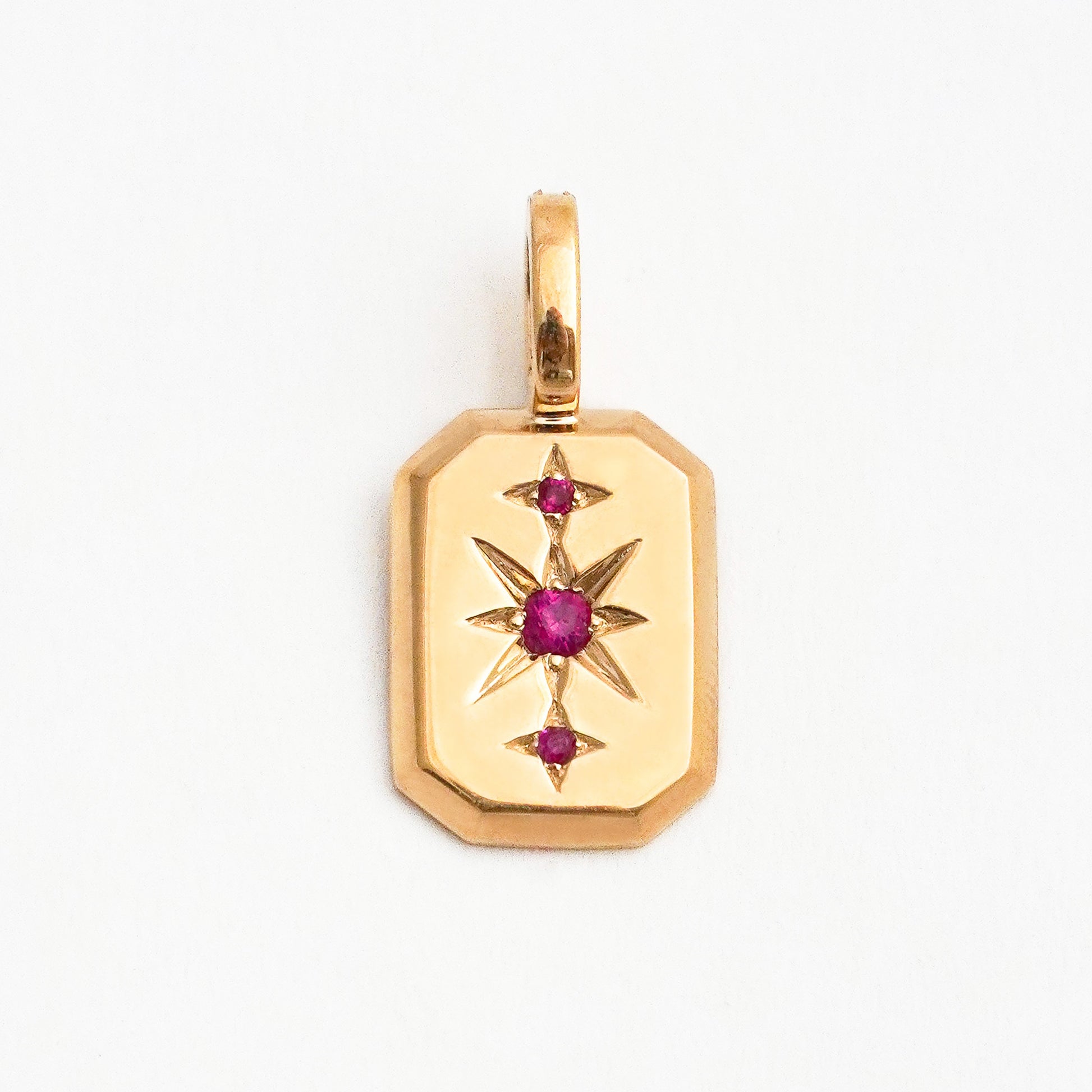 Dije Charm Polaris estrella con rubí natural en Oro 18k