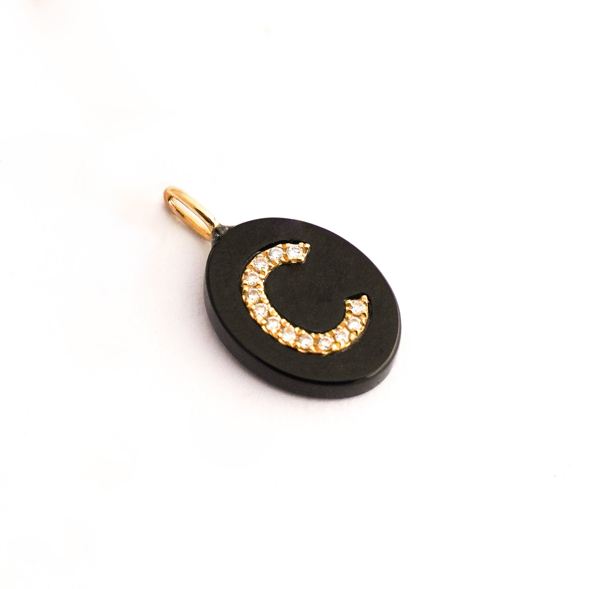 Dije de letra con diamantes naturales y ónix natural Oro18k