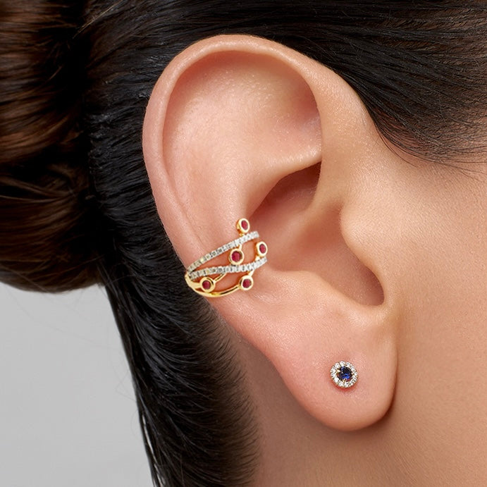 Ear cuff bicelado con rubíes y diamantes en Oro18k