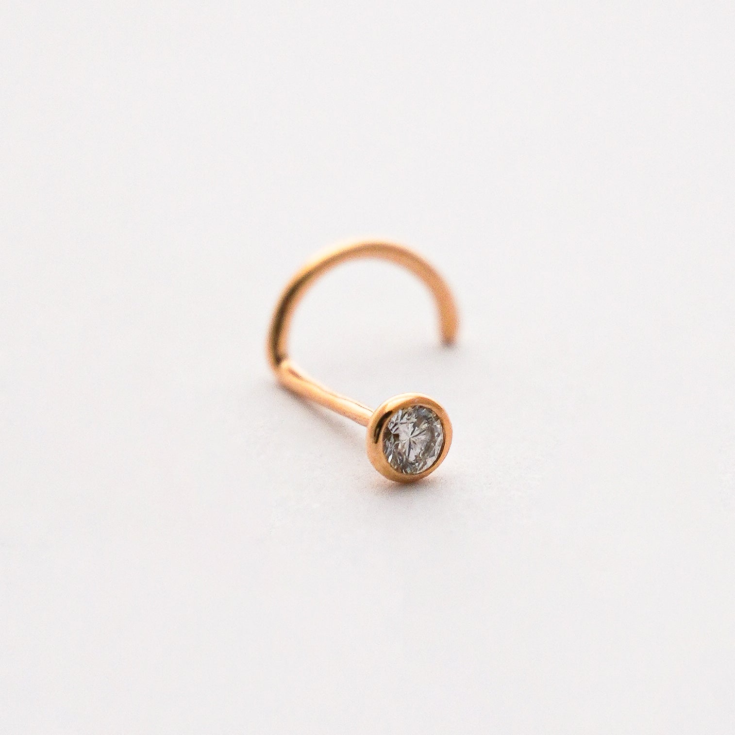 Piercing tipo G de oro18K con un diamante natural de 2.3 mm, cuidadosamente engastado, realzando al máximo su brillo y pureza.